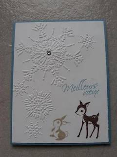 avec le super plioirs a gaufrage avec flocons. Il est super beau et donne tellement un bel effet. J'ai ici étampé avec le kit ''Forest friends'' qui est trop mignon.